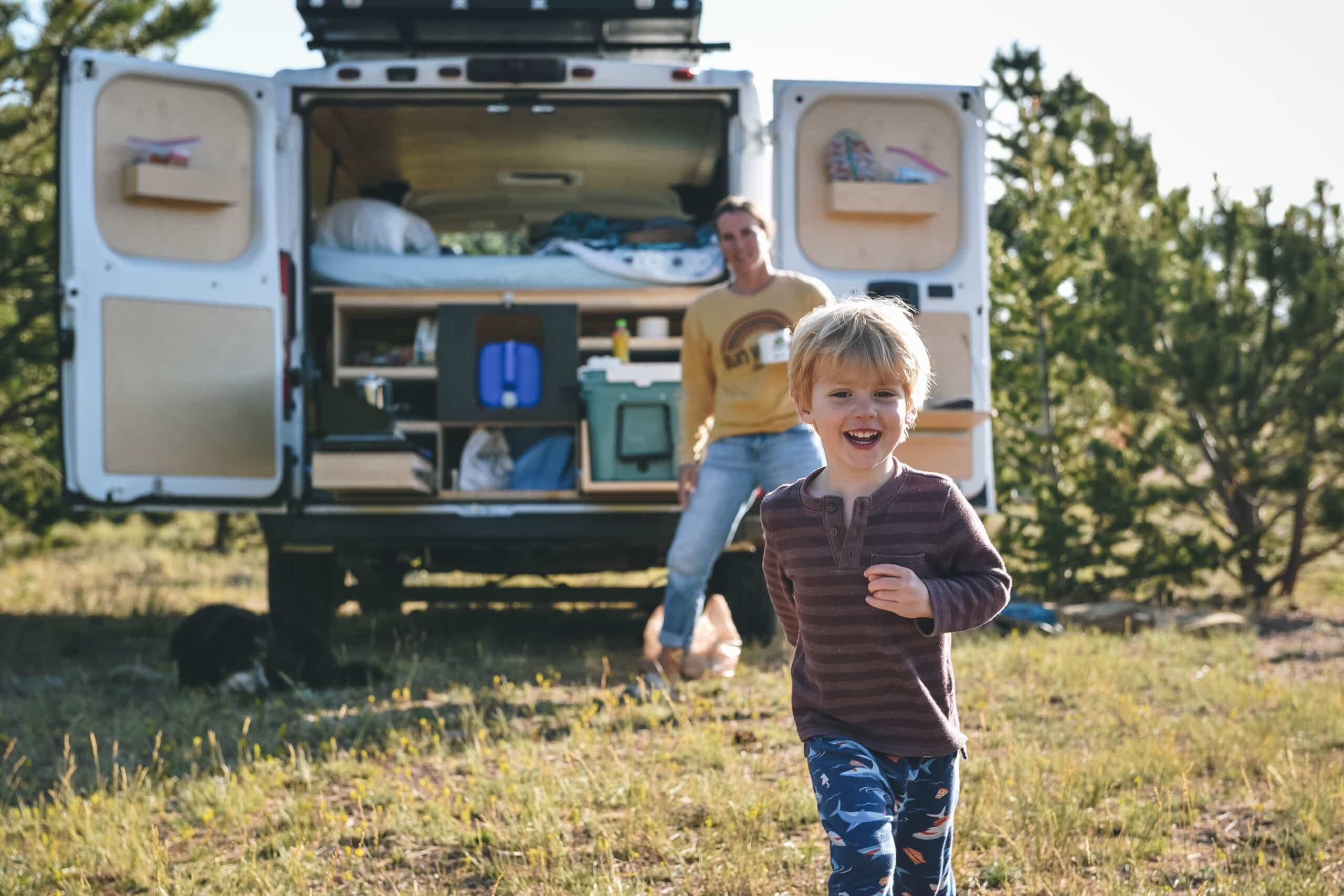 With a modern, log cabin interior and a waterproof rooftop tent, this baby has all-weather sleeping quarters for four. This low profile, easy-to-drive van seats four and comes with all the camp cooking essentials.